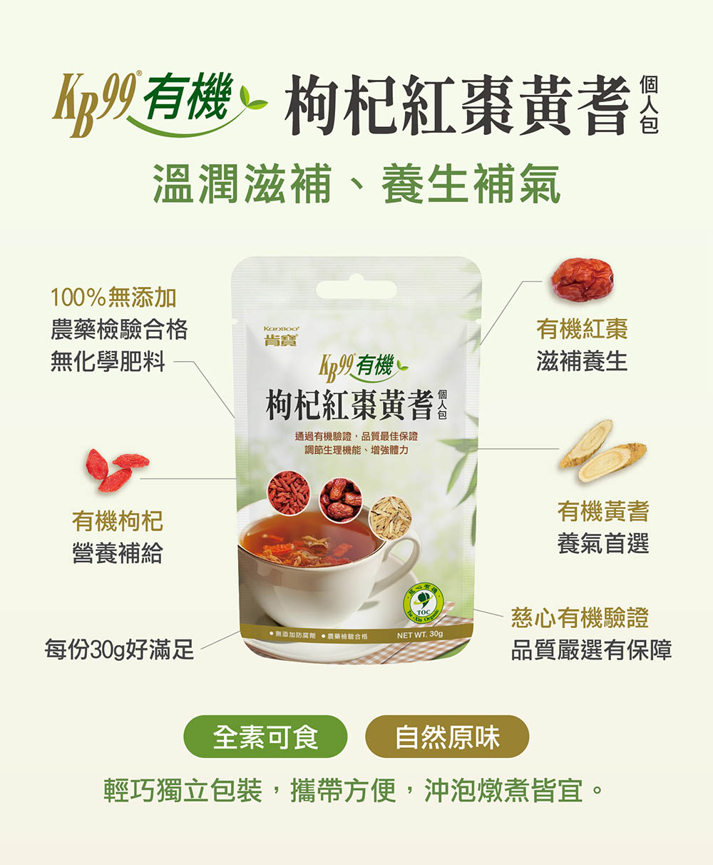 【肯寶KB99】有機枸杞紅棗黃耆個人包