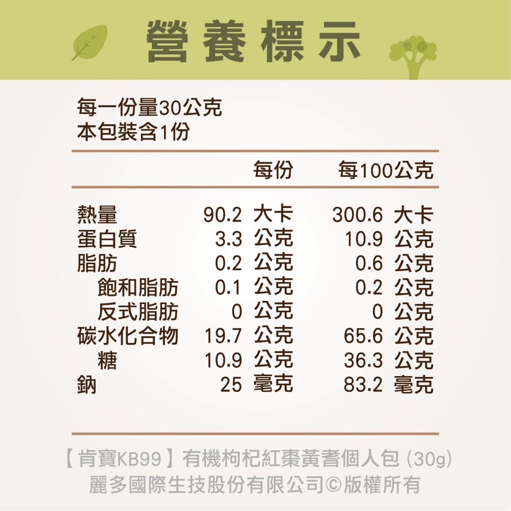 肯寶KB99 有機枸杞紅棗黃耆個人包 (30g)