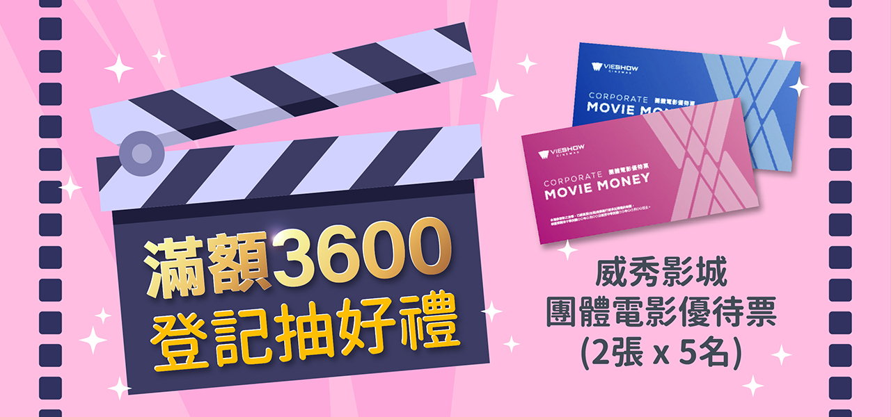 單筆消費滿$3600登記抽『威秀影城電影票2張』。