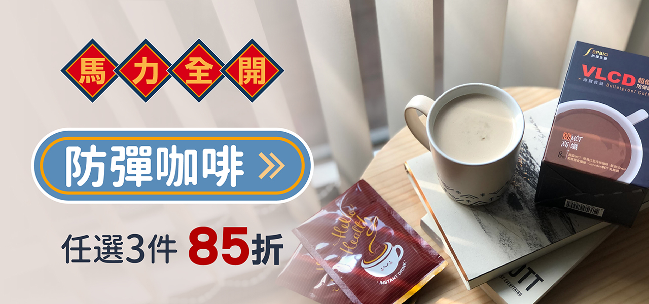 【馬力全開】- 防彈咖啡:任選3件85折。